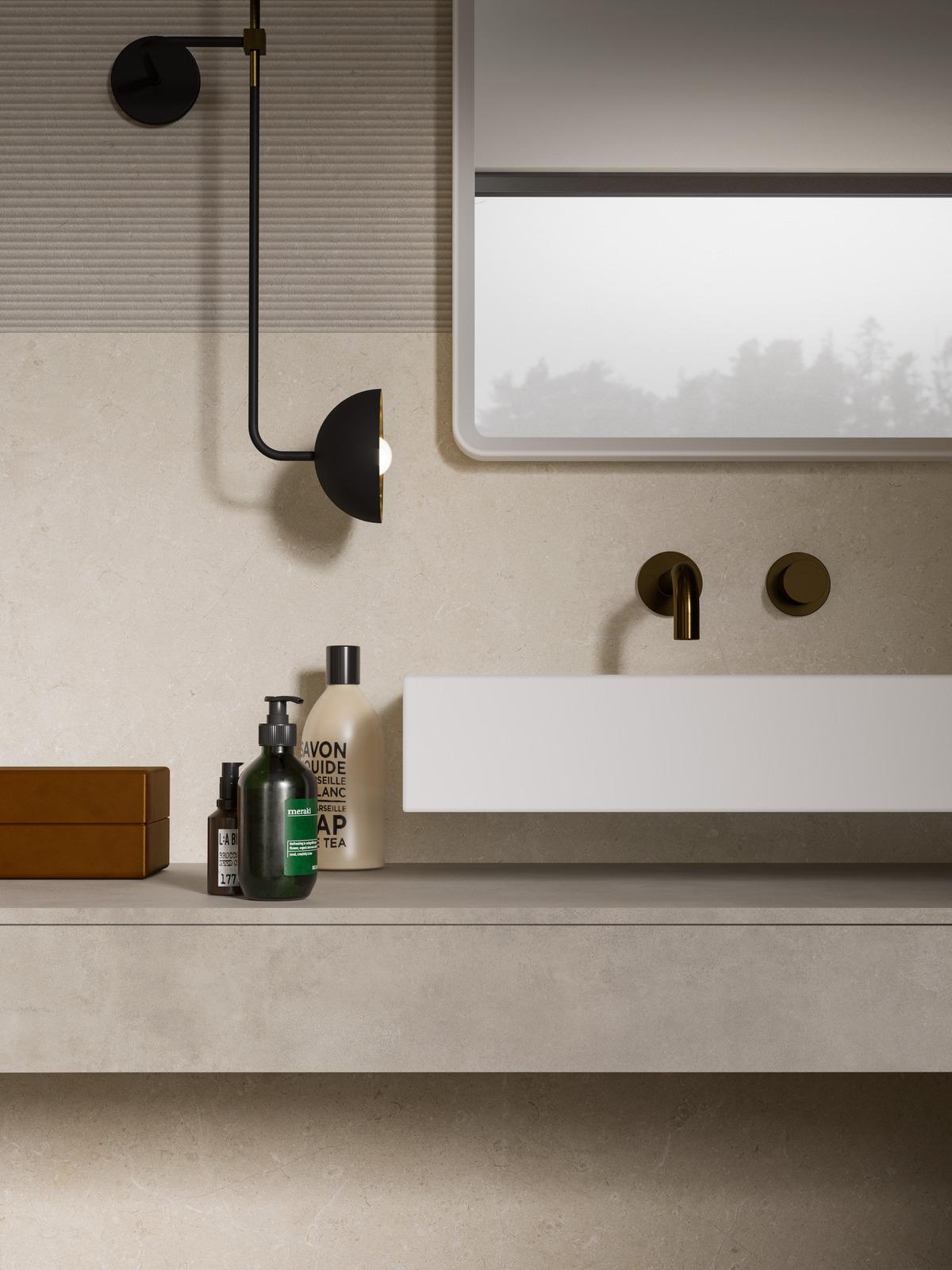 Fünf Marmor- und Steinsorten von ausgesuchter Schönheit werden in ein Wandfliesenkonzept umgesetzt, das klassische Ästhetik mit einer zeitgemäßen Anmutung vereint.