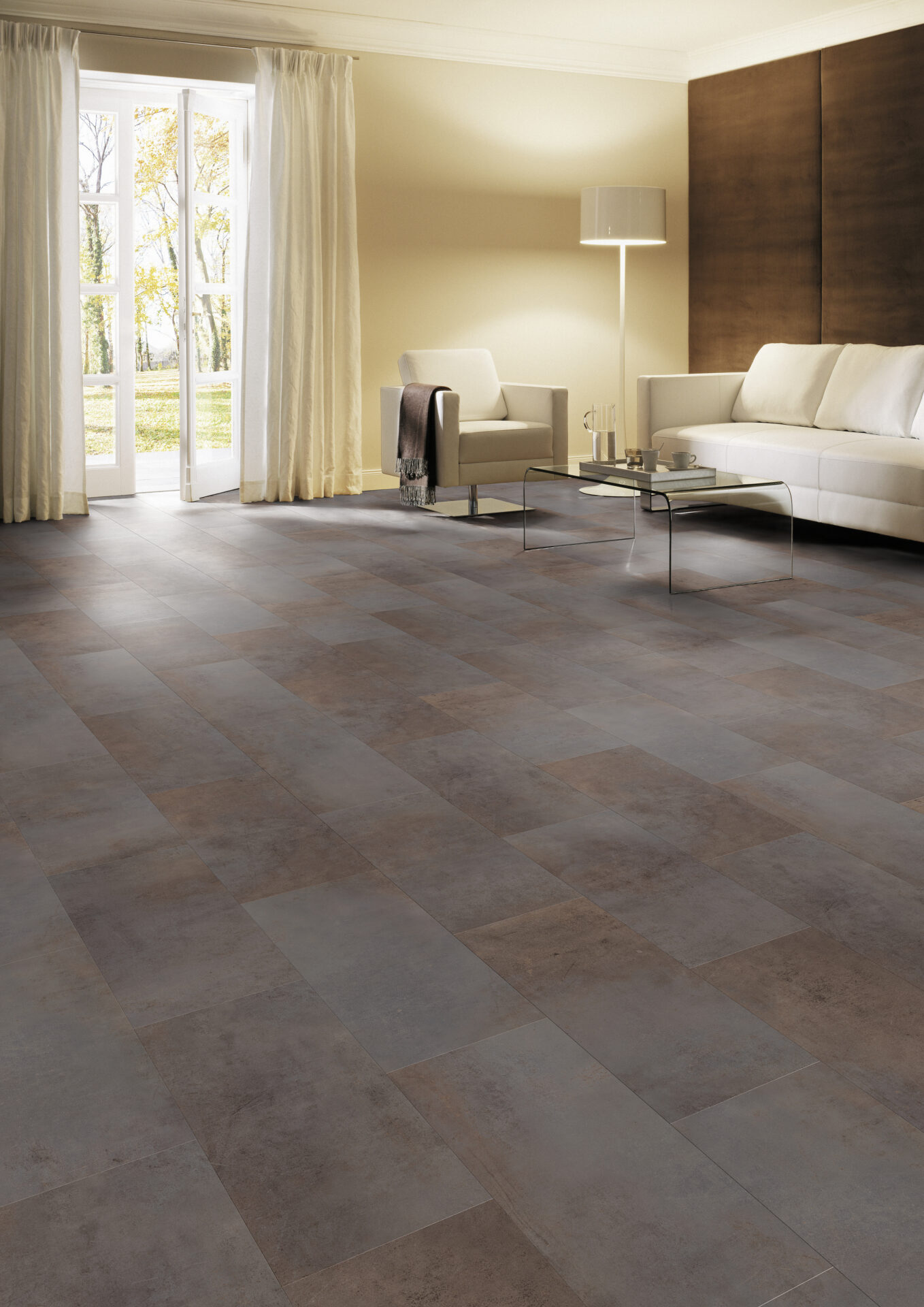 Edle Dekore in Stein-Optiken sind charakteristisch für die LIVING EXQUISIT Vinyl-Kollektion. Ein Bodenbelag, der sich beim Barfusslaufen angenehm warm anfühlt.