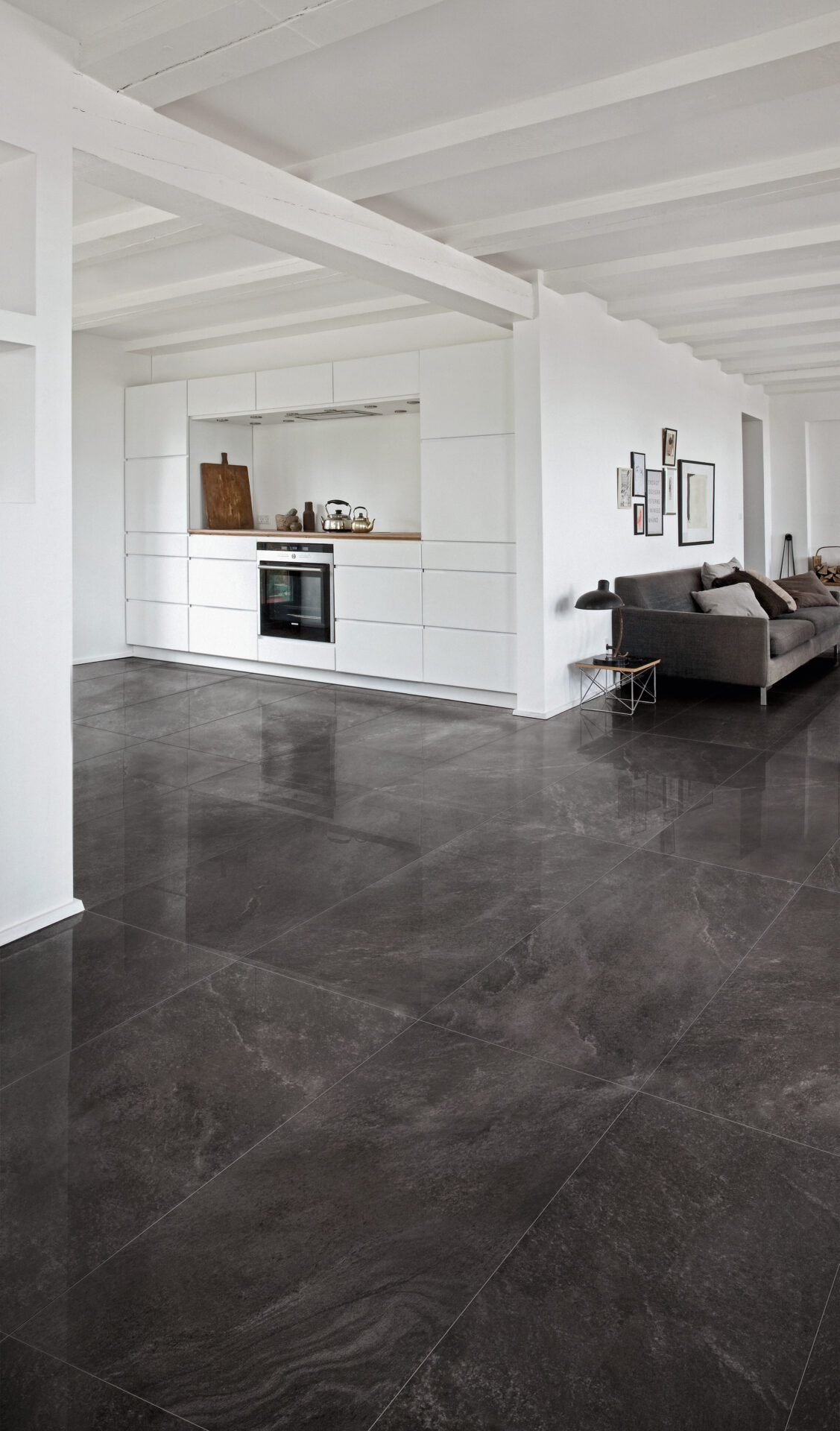 Die kombinierte Verwendung von glänzenden und matten Lacken, die sich in der Grafik abwechseln und ineinander übergreifen - was die eigentliche technologische Neuheit und den derzeit am weitesten entwickelten Ausdruck des digitalen Verfahrens darstellt - sorgt dafür, dass Sie den Eindruck bekommen, einen gespaltenen Naturstein zu betrachten. Aber wenn Sie Ihre Hand darüber gleiten lassen, dann werden Sie feststellen, dass die Oberfläche völlig glatt und somit einfach zu reinigen und von der Verlegung bis zur täglichen Wartung praktisch zu handhaben ist.