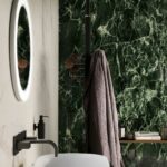 Einunddreißig Marmoroptiken, die in 7 Formaten mit unbehandelter oder glänzender Oberfläche zur Wahl stehen und mit Mosaiken und Formteilen ergänzt werden.