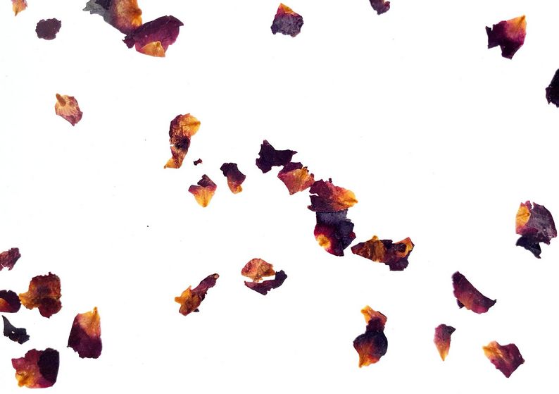 Die locker verteilten Blütenblätter der Rose bilden zusammen mit dem weißen Ecovlies das Design für diese Organoid Tapete. Die Blütenblätter der Rose sind stark duftend und farblich sehr intensiv. Farbintensität je nach verfügbaren Blüten. Leichte Farbabweichungen bzw. -unterschiede sind möglich. Ohne Zusatz von künstlichen Farb- oder Aromastoffen.