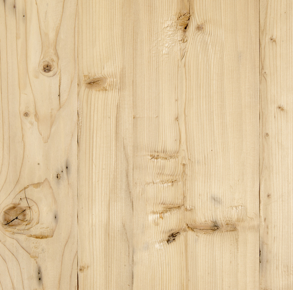 Behandlung: Natur, handgehobelt, leicht gedämpft, schönes Wurmbild, leicht rissig